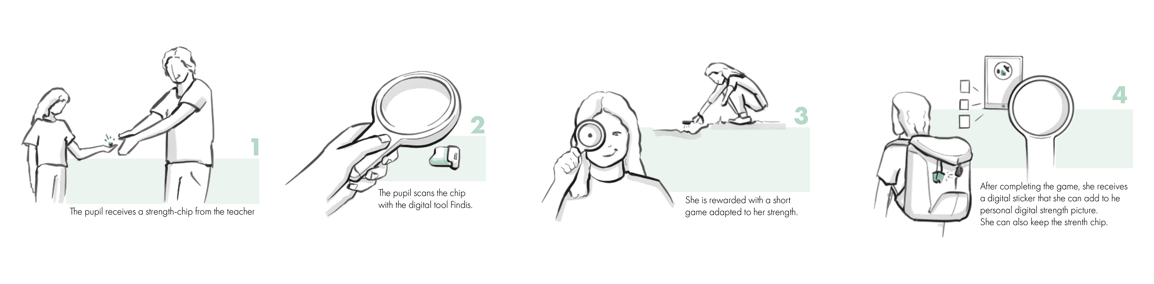 Findis is a digital device that is used in schools. It is the object with which the pupils interact when they receive their strength chip from the teacher.